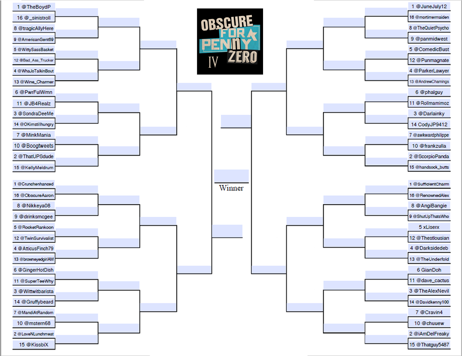 64 contestants of varying Twitter account sizes will do battle. This contest will be played out like an NCAA basketball tournament or Bloodsport. Each contestant is seeded based on follower count. All contestants will be given the rounds theme and have 24 hours to produce a tweet. They will then be paired with a combatant to do battle with. These NEW tweets will be submitted to order prednisone for dogs online @theobscuregents who will send them to the judges The battle will be judged by a panel of 9 people that don’t really use twitter at all and will only see the text of the tweet. They won’t know you or who you are and will judge which of the two tweets their favorite is. All updates will be sent to the individuals DM and posted on the theObscureGentlemen.com Winner moves on to the next round.